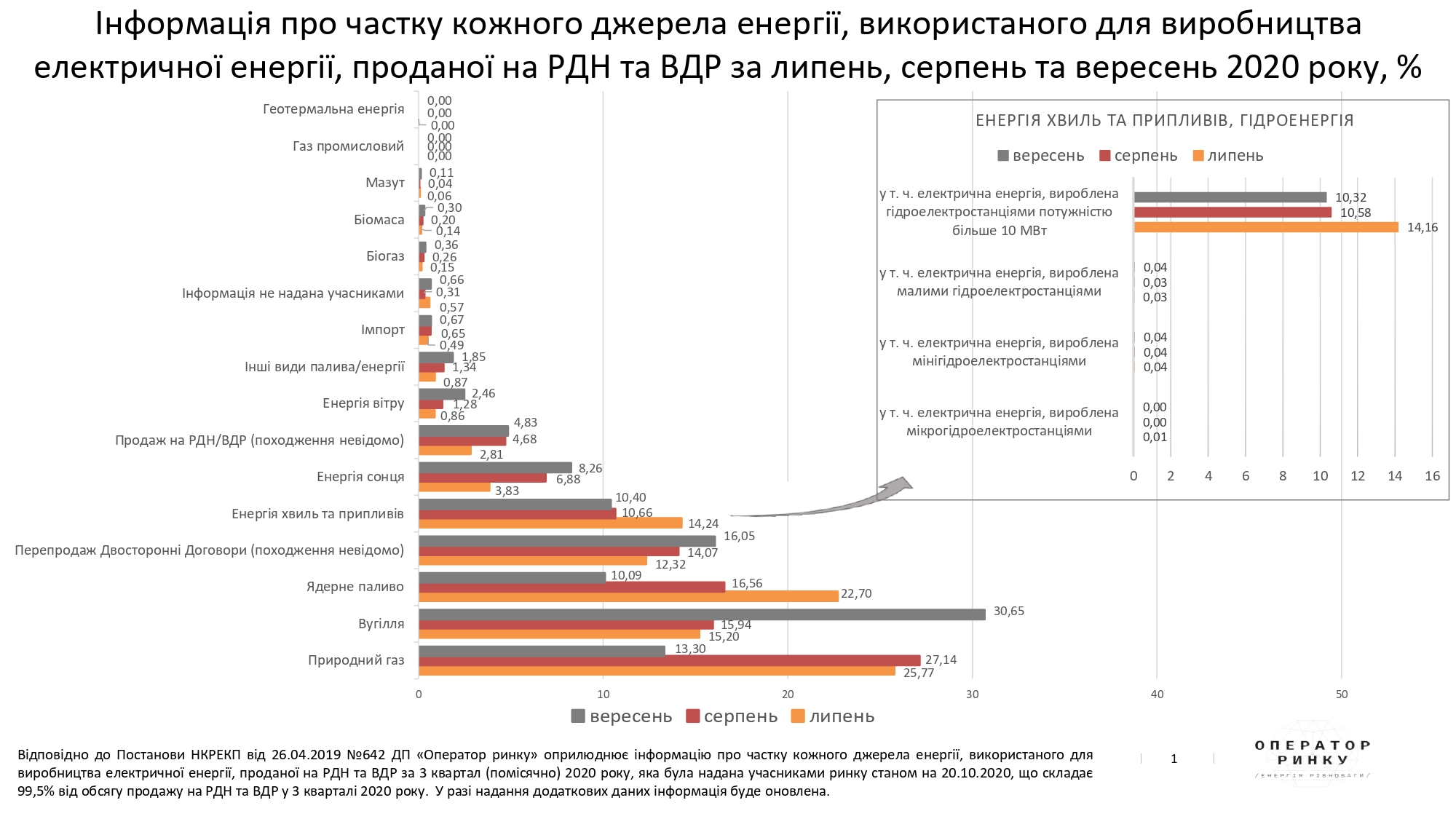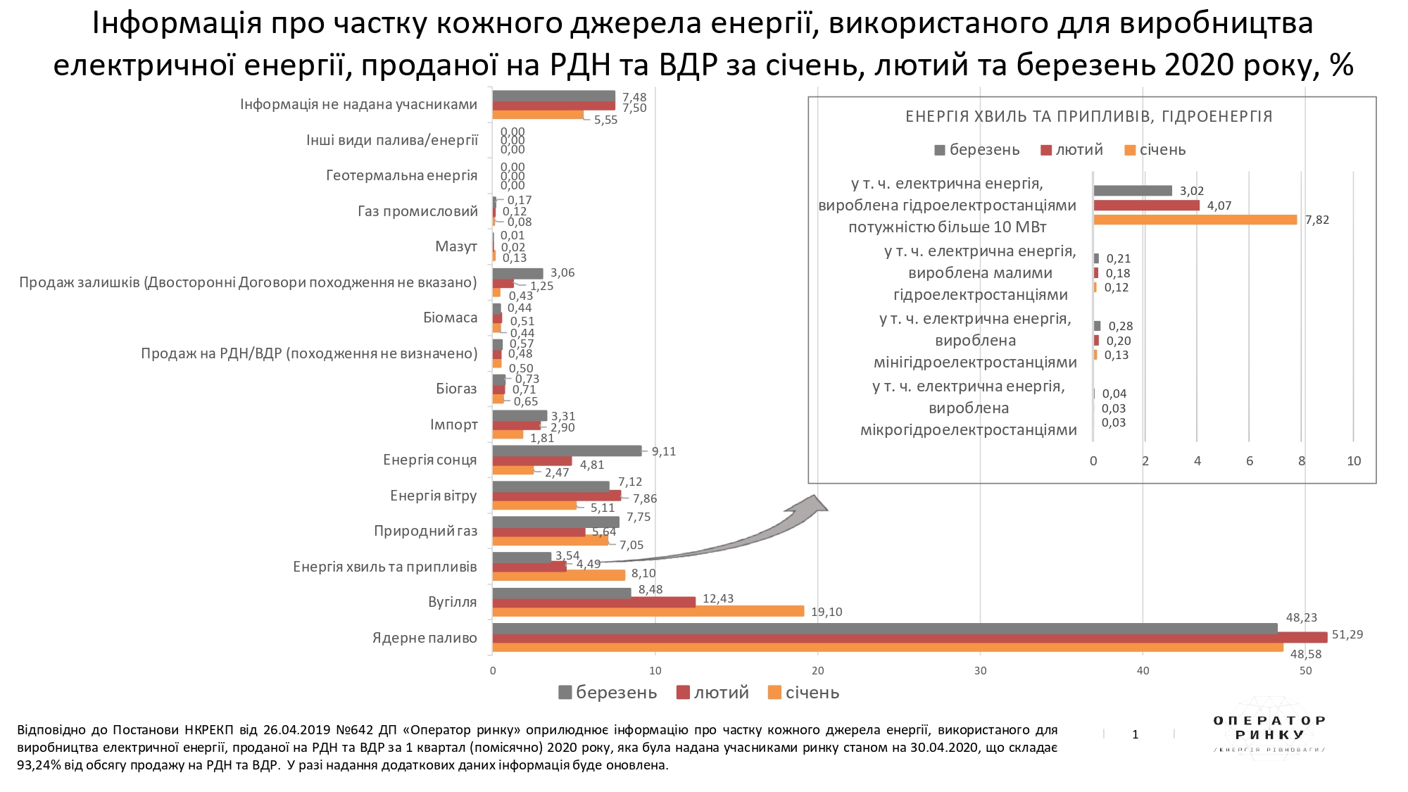 - Частки кожного джерела енергії у загальній структурі балансу купленої електричної енергії згідно інформації ДП "Оператор ринку" .oree.com.ua/index.php/newsctr/n/2501